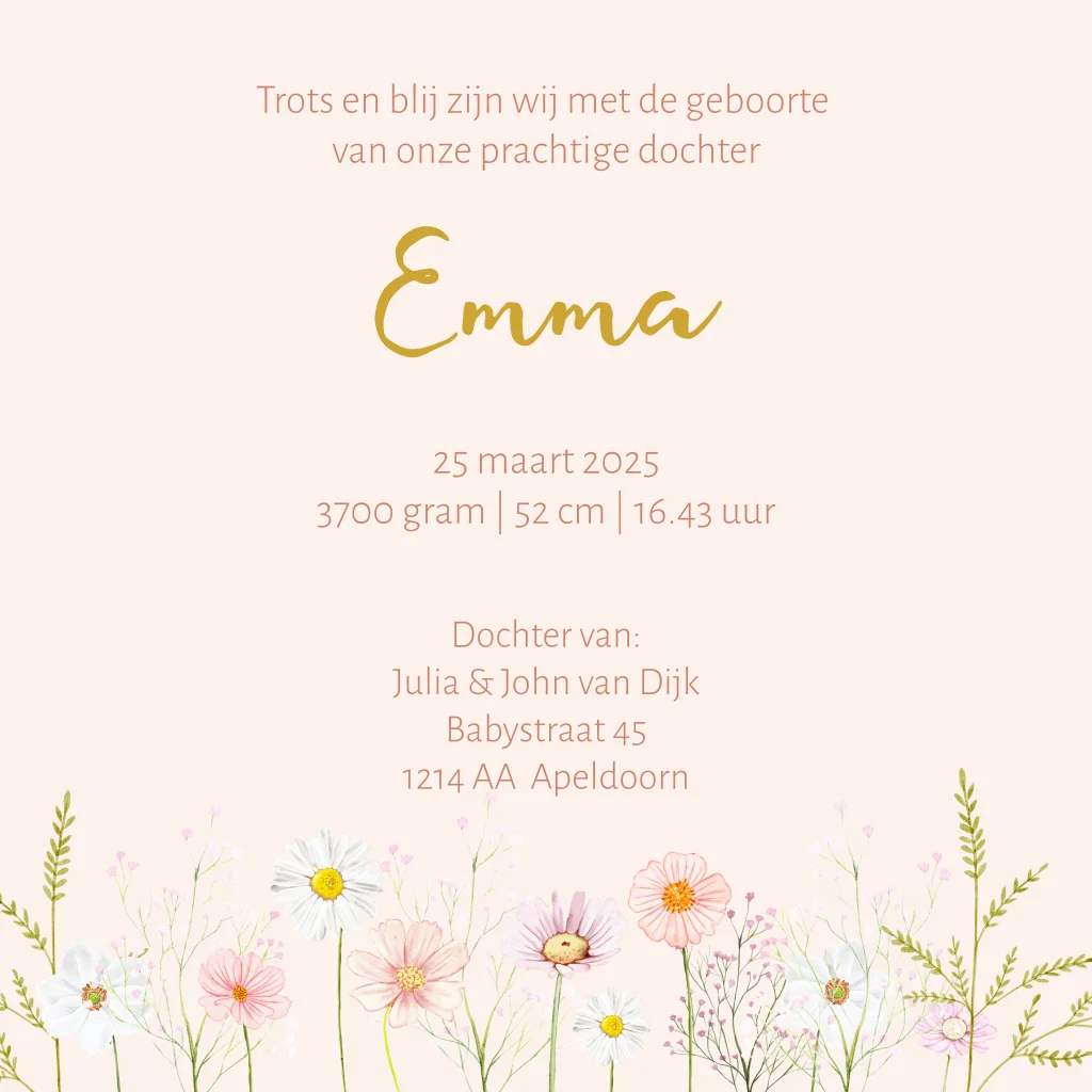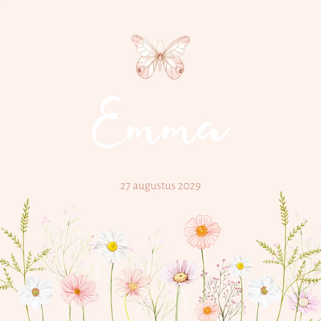 Geboortekaartje meisje bloemen met vlindertje