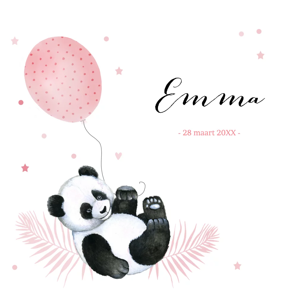 Geboortekaartje panda voor een meisje met lief klein pandabeertje met ballonnetje in zijn pootje. (21306)