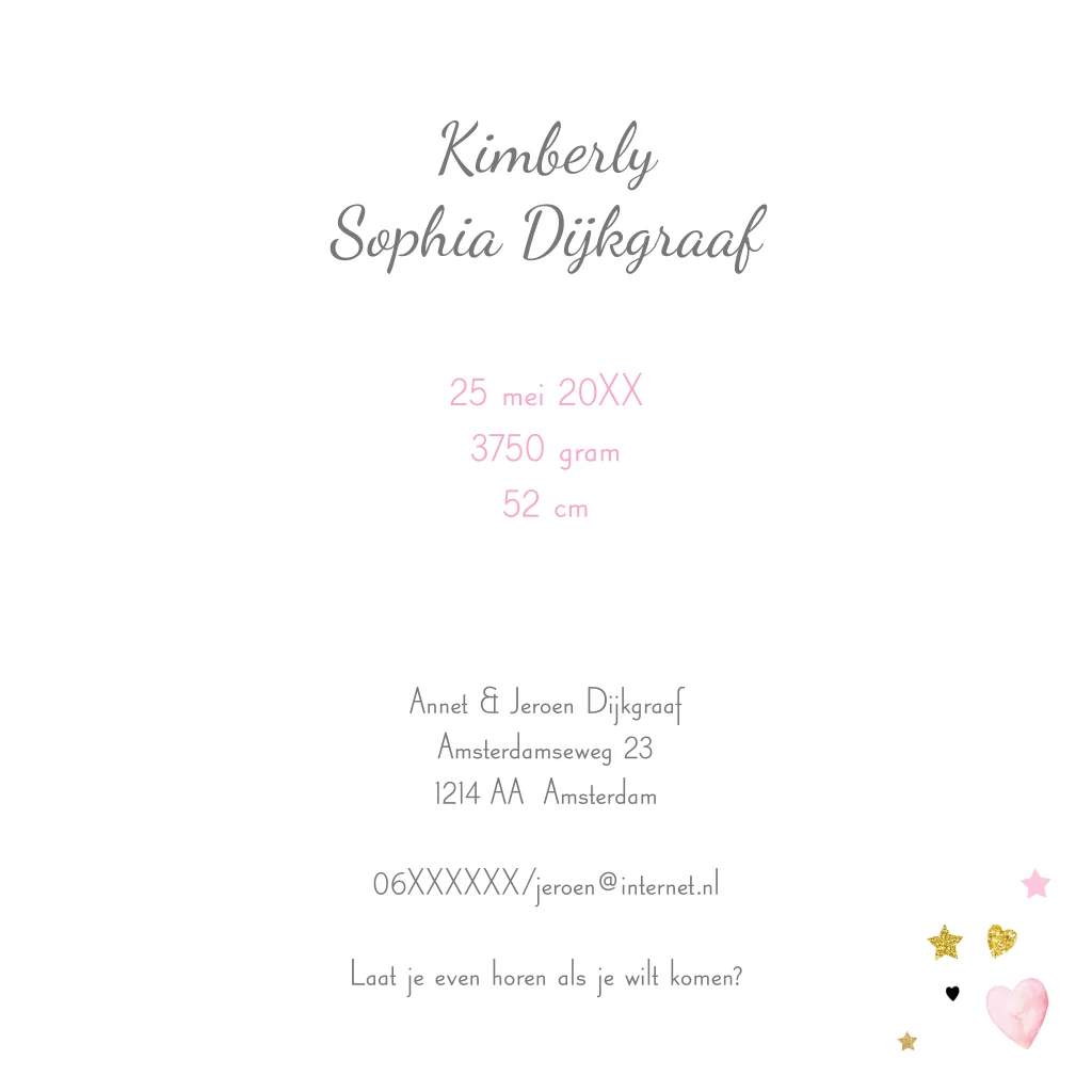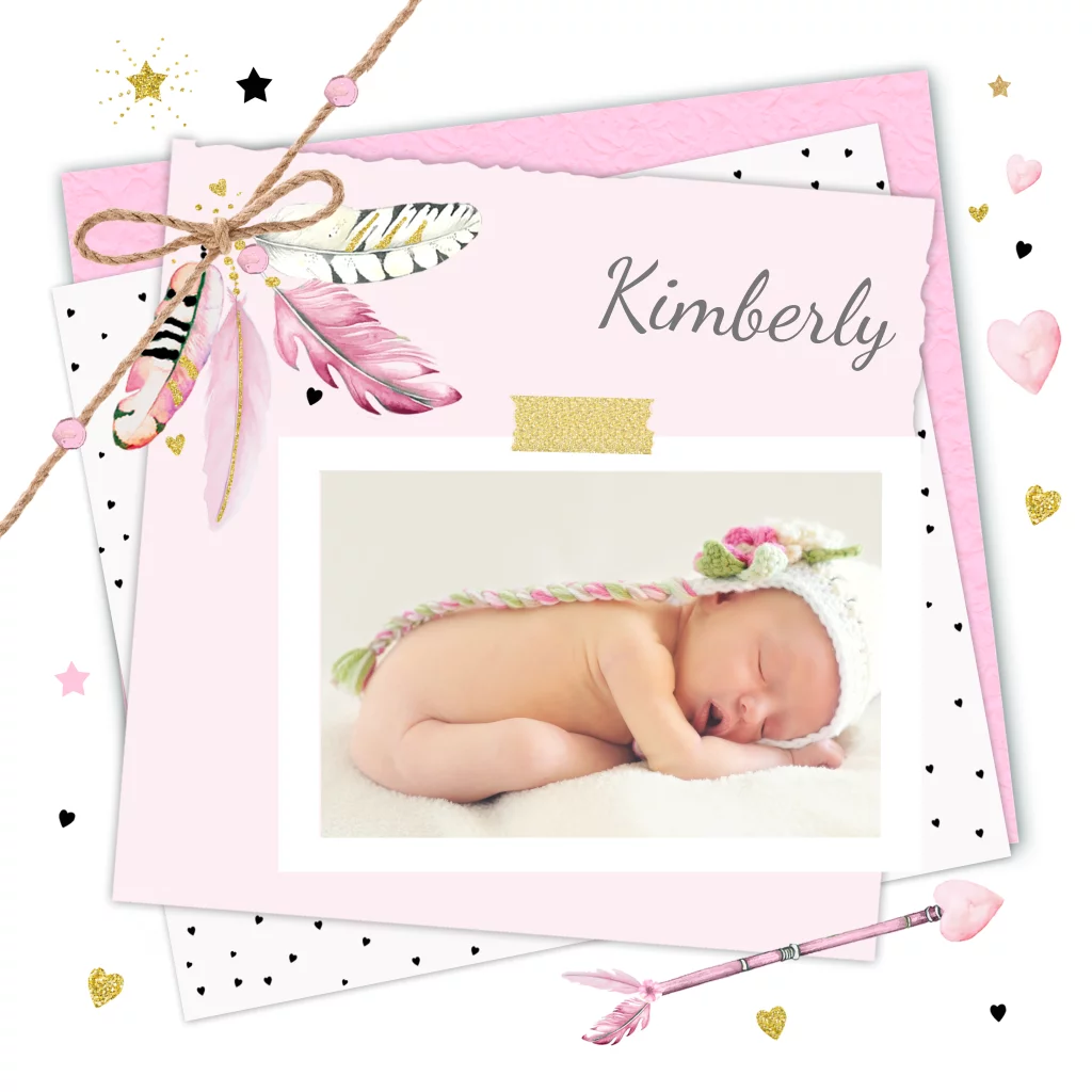 Geboortekaartje meisje foto met papiertjes veren