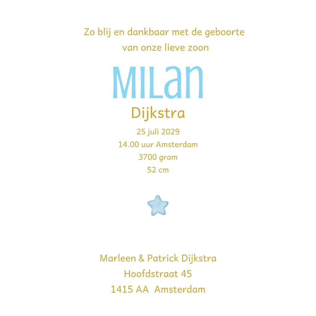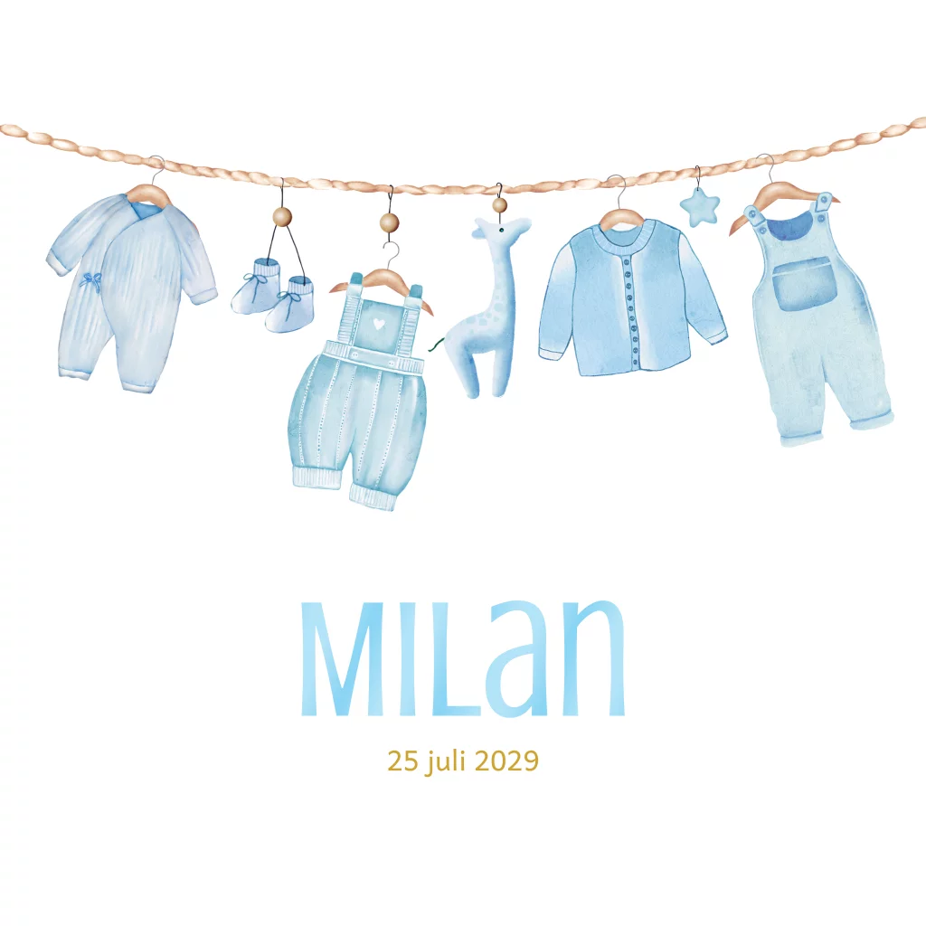 Geboortekaartje voor een jongetje met kleertjes aan waslijn