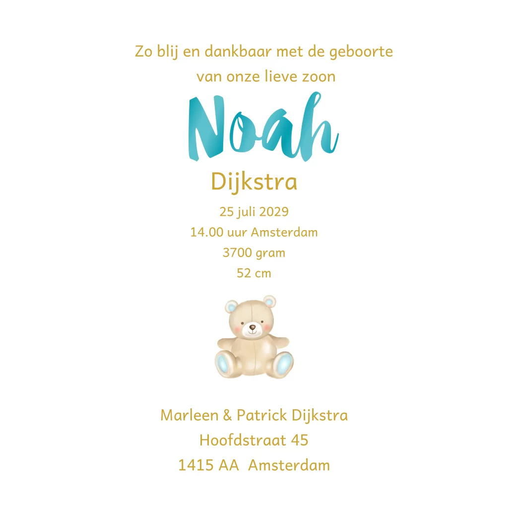 Lief geboortekaartje voor een jongen met wiegje ballonnen beertje