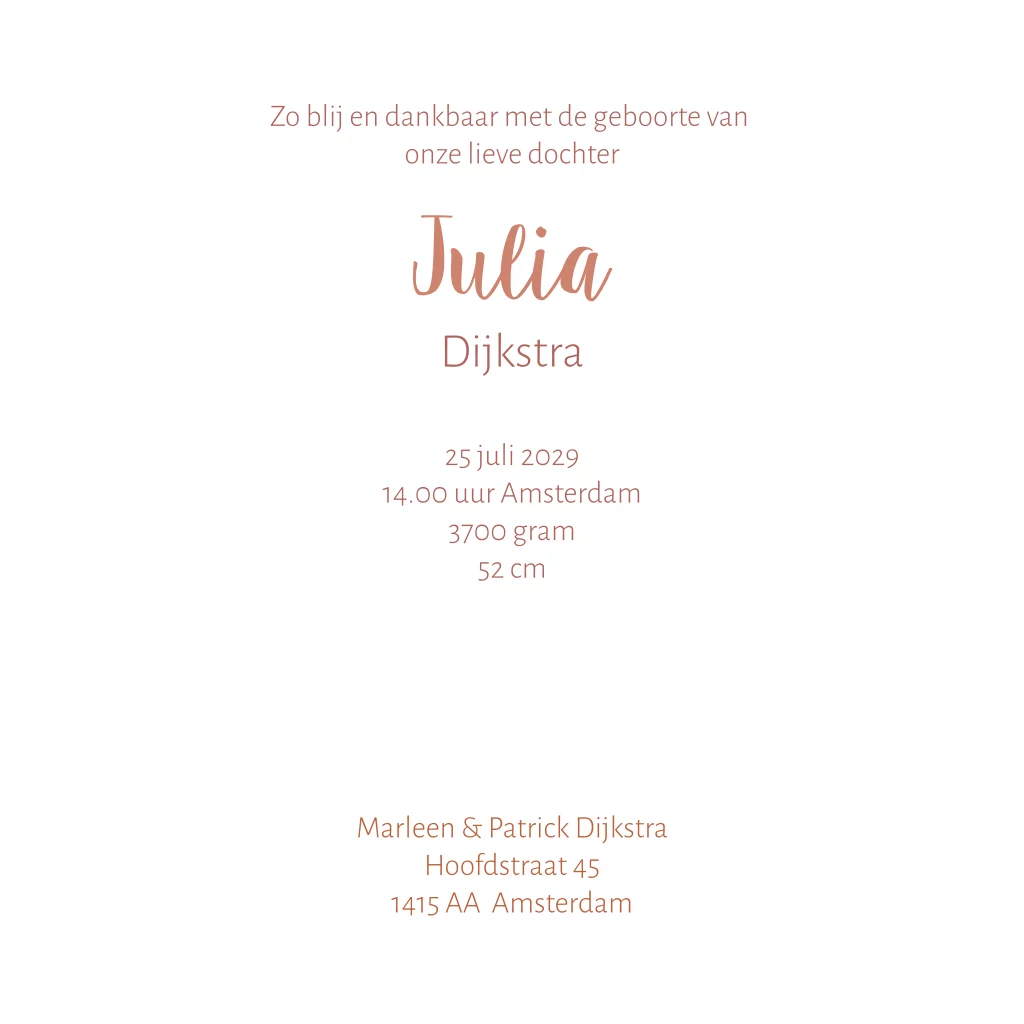Getekend geboortekaartje voor een meisje met leuke wiegje met ballonnen en beertje. (23737)