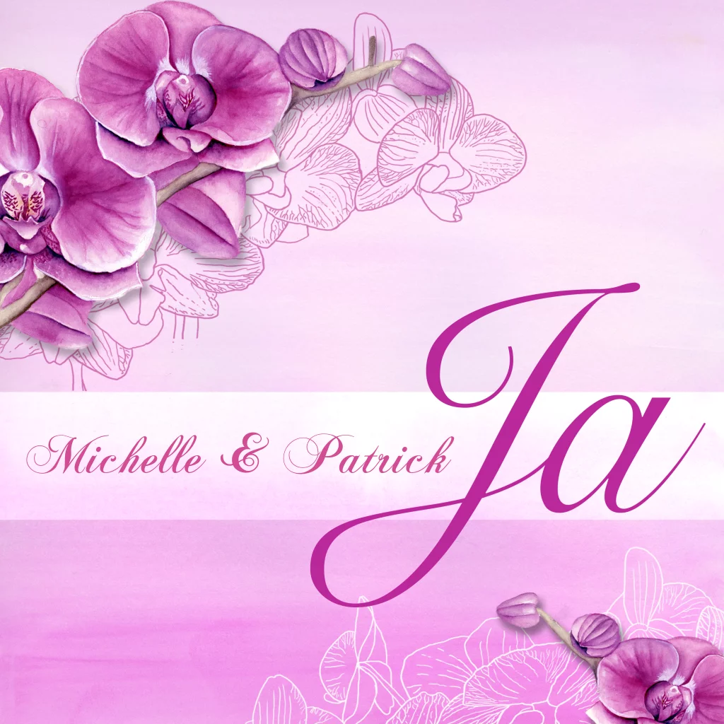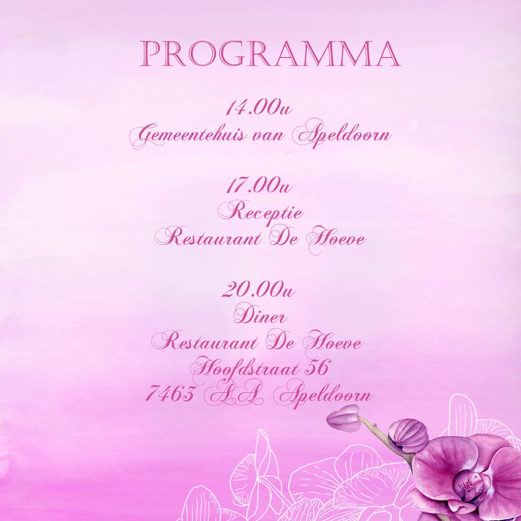 Huwelijk uitnodiging trouwkaart met orchidee in paars roze