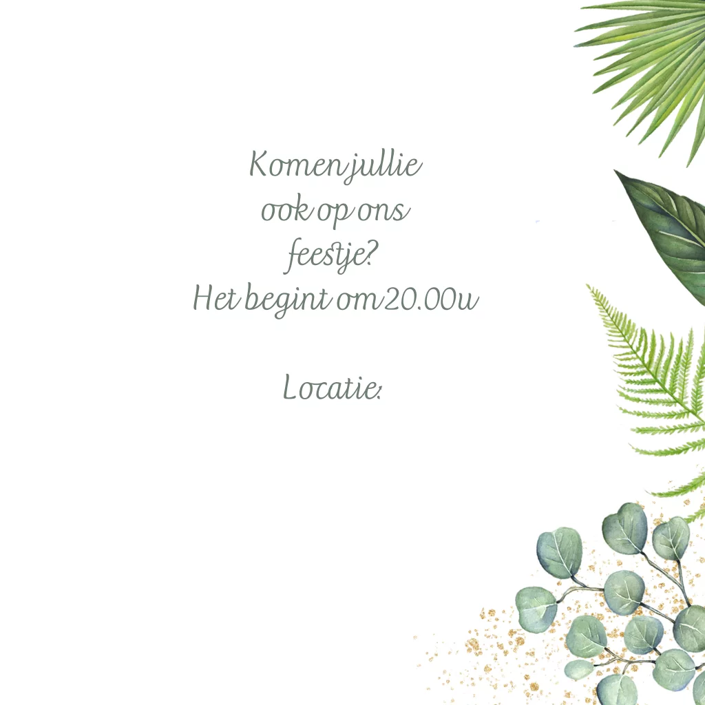 Uitnodiging jubileumfeest 50 jaar getrouwd met mooie botanische bladeren en hart versierd met glitters. (22050)