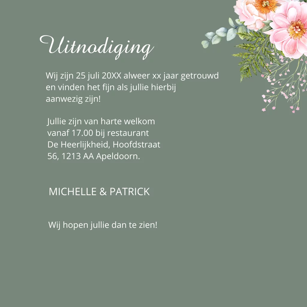 Huwelijksjubileum 50 jaar uitnodiging botanische rozen en blad