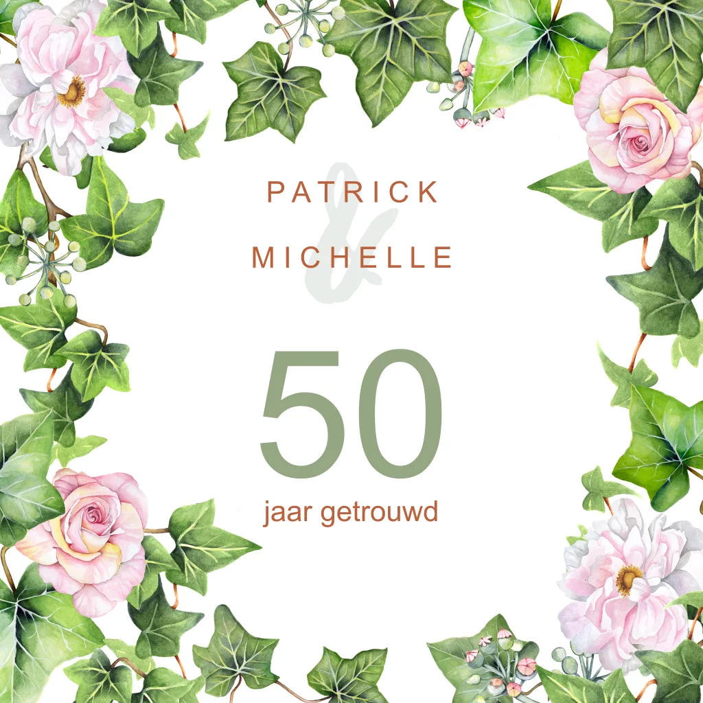 Huwelijksjubileum 50 uitnodiging met rozen klimop