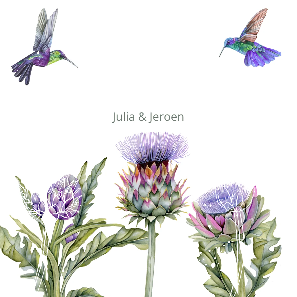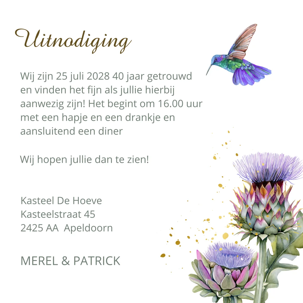 Uitnodiging 50 jaar getrouwd met artisjok hummingbirds