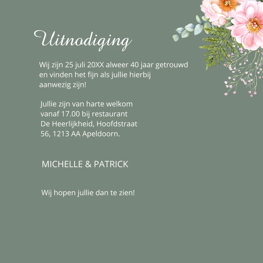 Jubileum uitnodiging 40 jaar getrouwd foto botanische rozen
