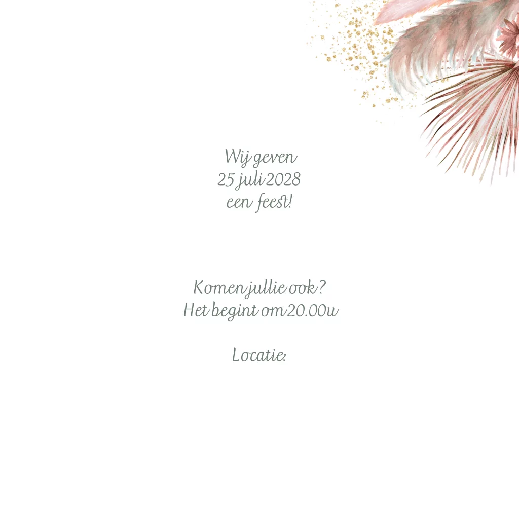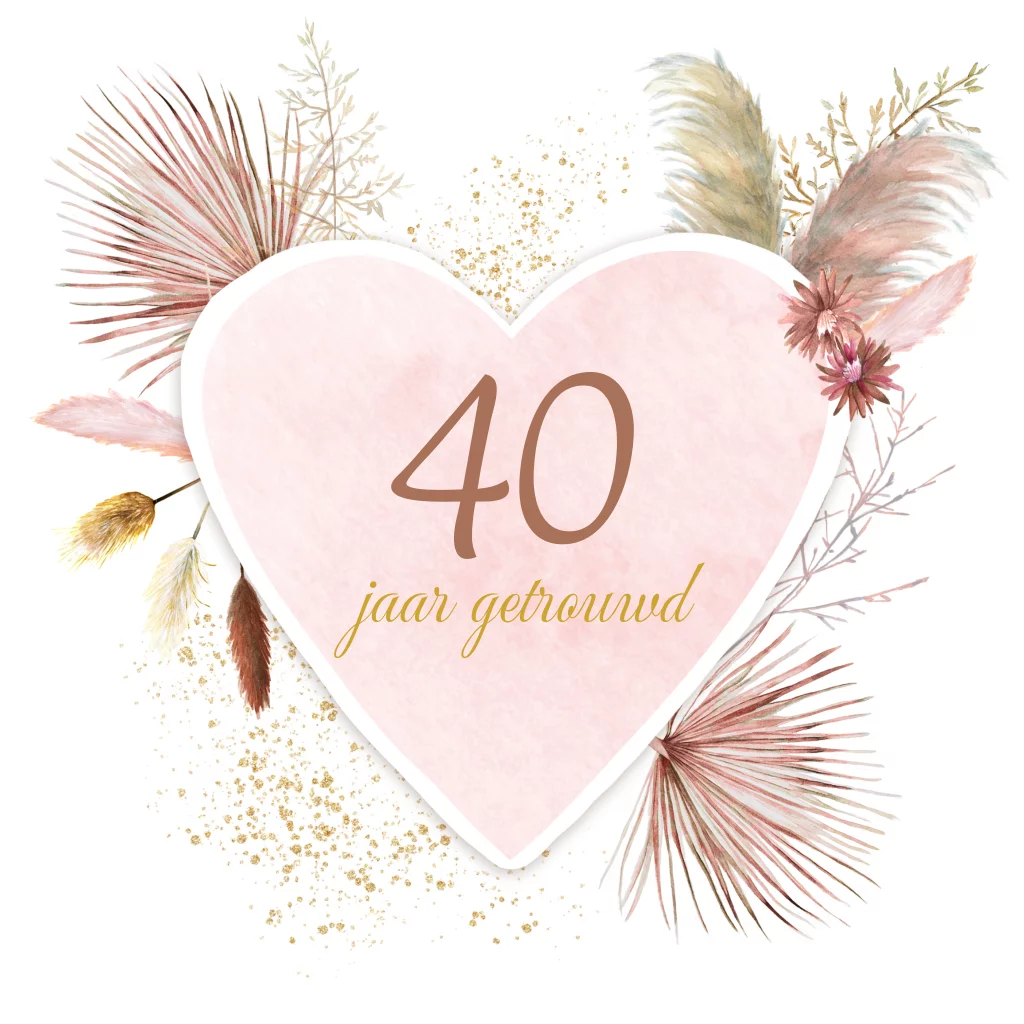 Jubileum uitnodiging 40 jaar getrouwd met hippe droogbloemen en hart voor je tekst. (22049)