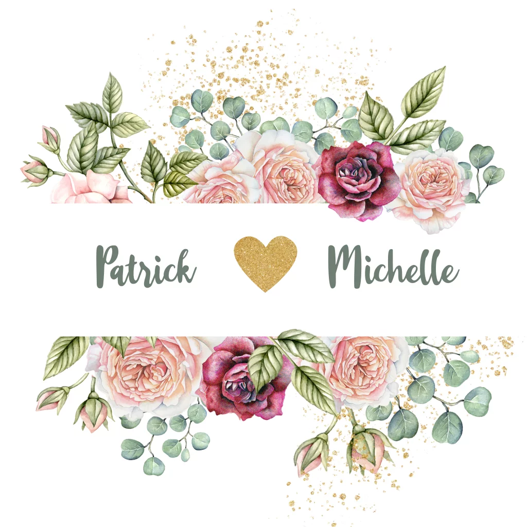Uitnodiging voor een huwelijk trouwkaart bruiloft met botanische rozen in aquarel. (10157)