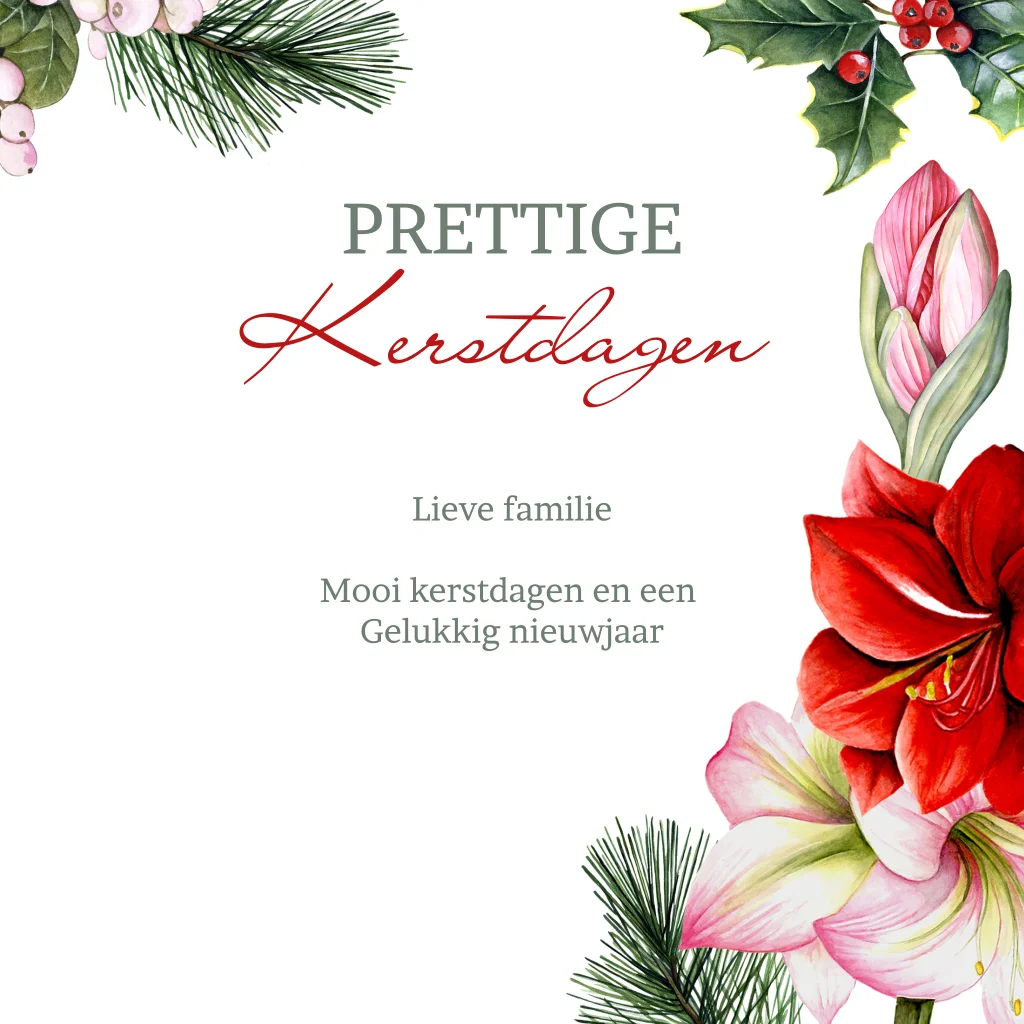 Kerstkaart met sfeervolle amaryllis bloemen. (24216)