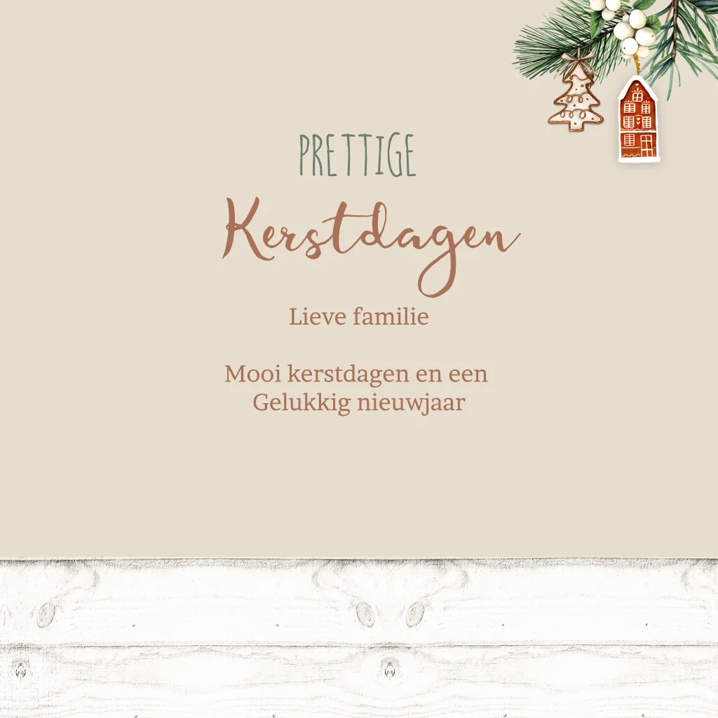 Kerstkaart met kerstboom in pot versierd met gingerbread