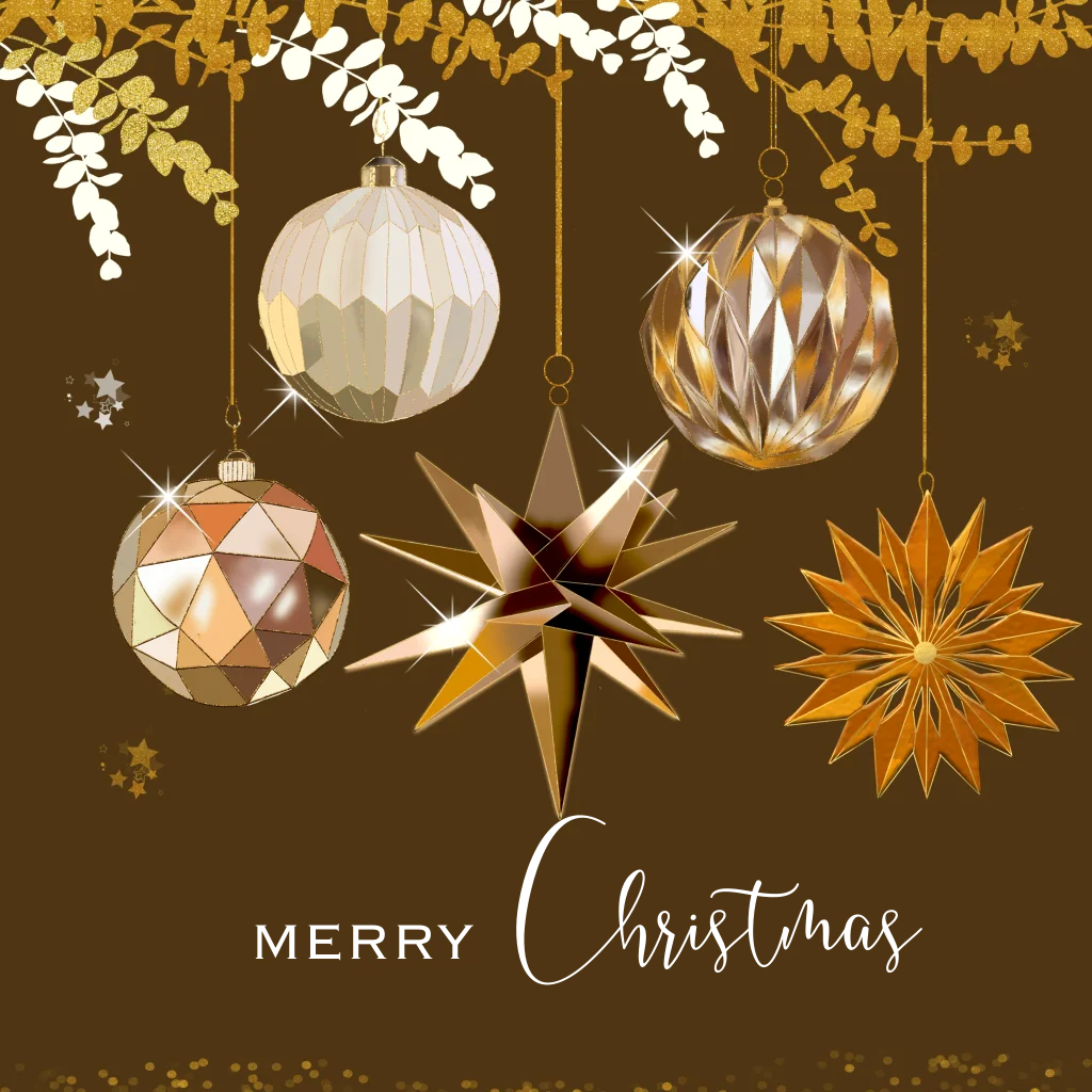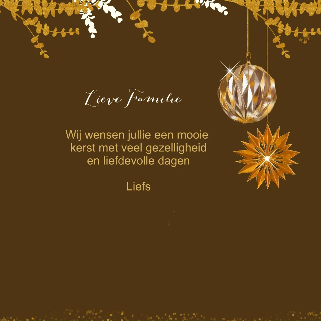 Kerstballen aan gouden lint en ster in goudtinten en echte folie. (23574)