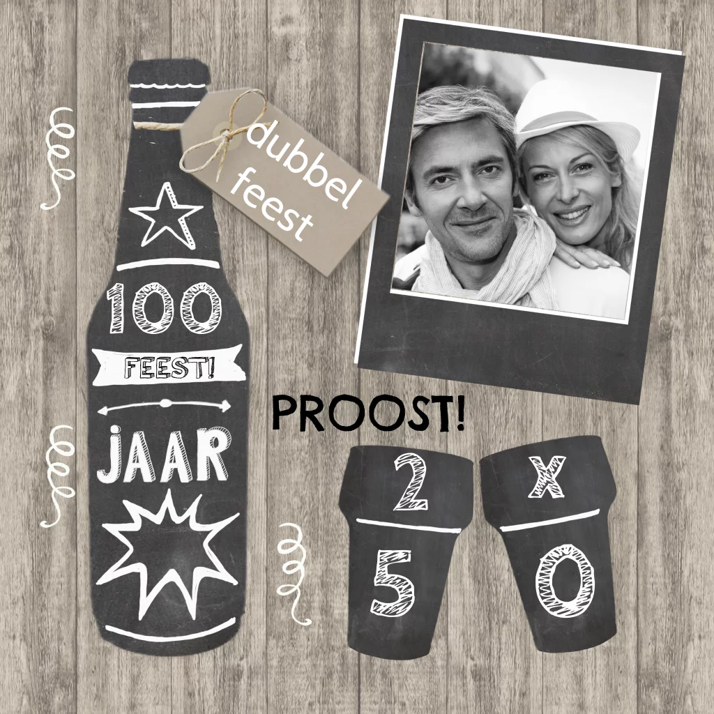Uitnodiging dubbel feest verjaardag krijtbord bier