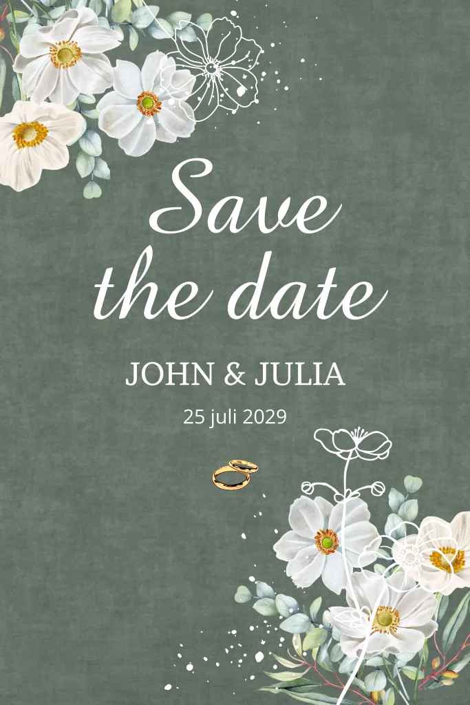 Save the date uitnodiging met witte bloemen anemoontje. (24453)