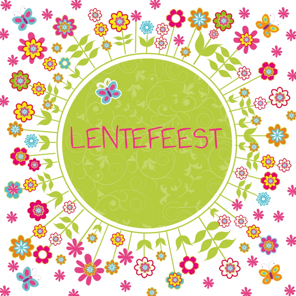 Tekst lentefeest kaartje meisje met kleurrijke bloemen
