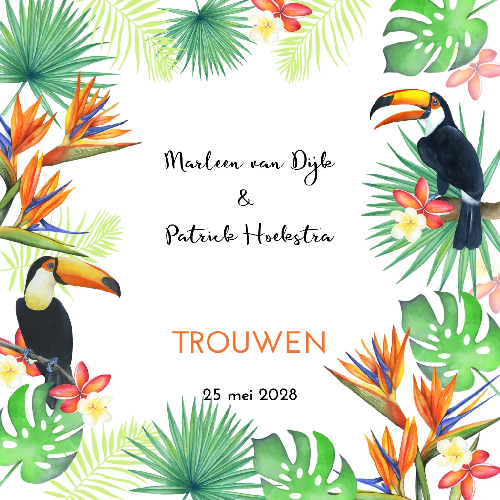 Trouwkaart toekans met mooie toekan vogels in tropische sfeer. (8423)