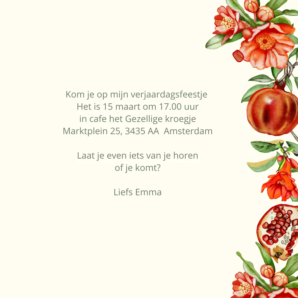 Uitnodiging verjaardag vrouw 50e feestje granaatappels