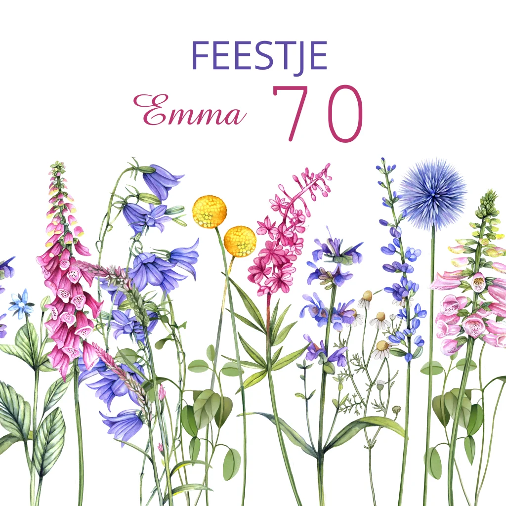 Uitnodiging 70ste verjaardag vrouw veldbloemen