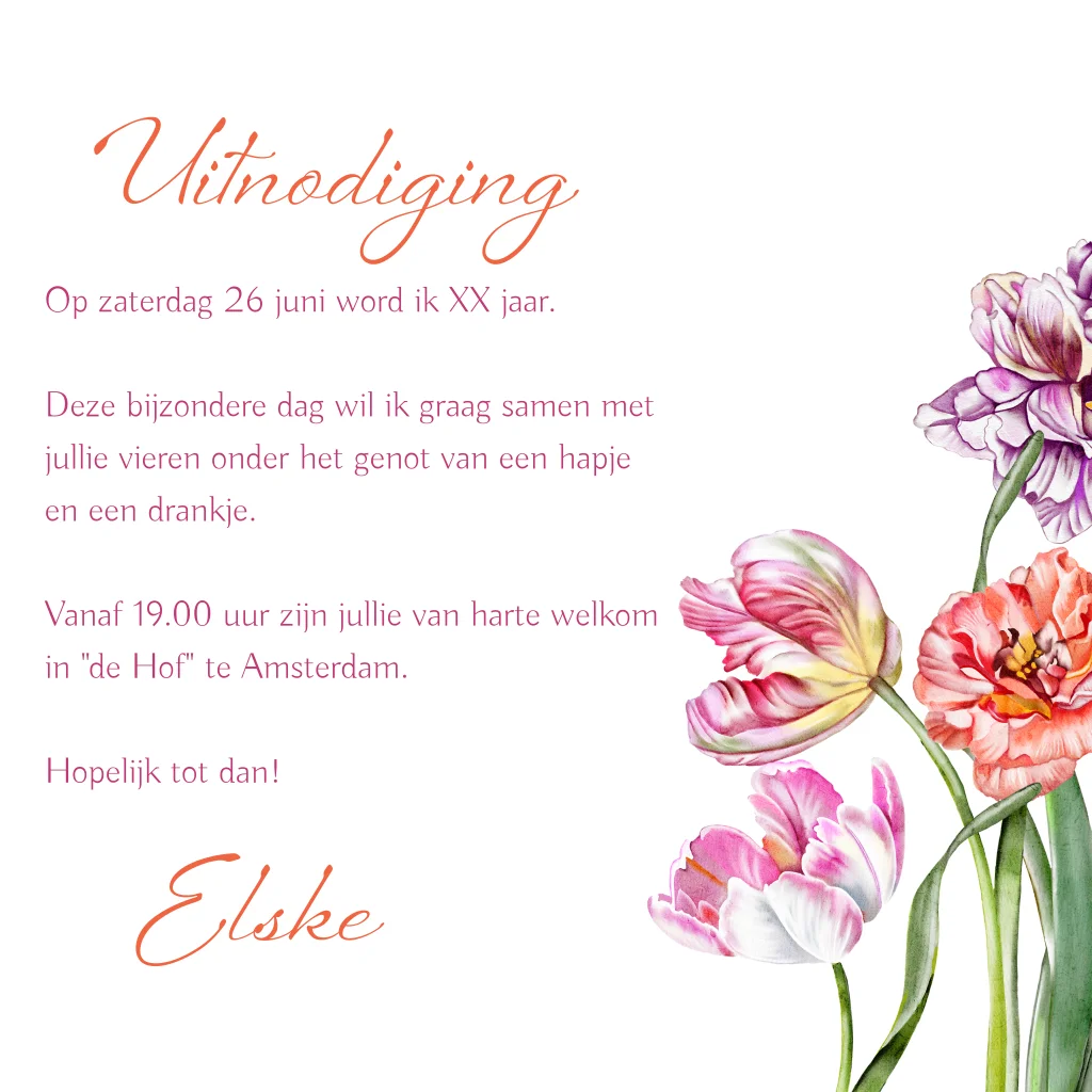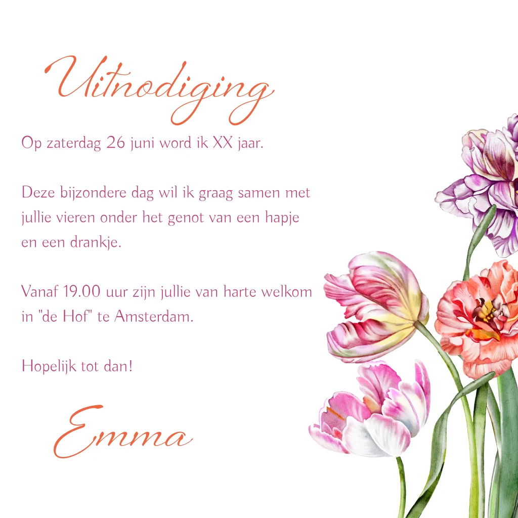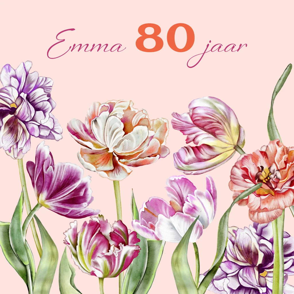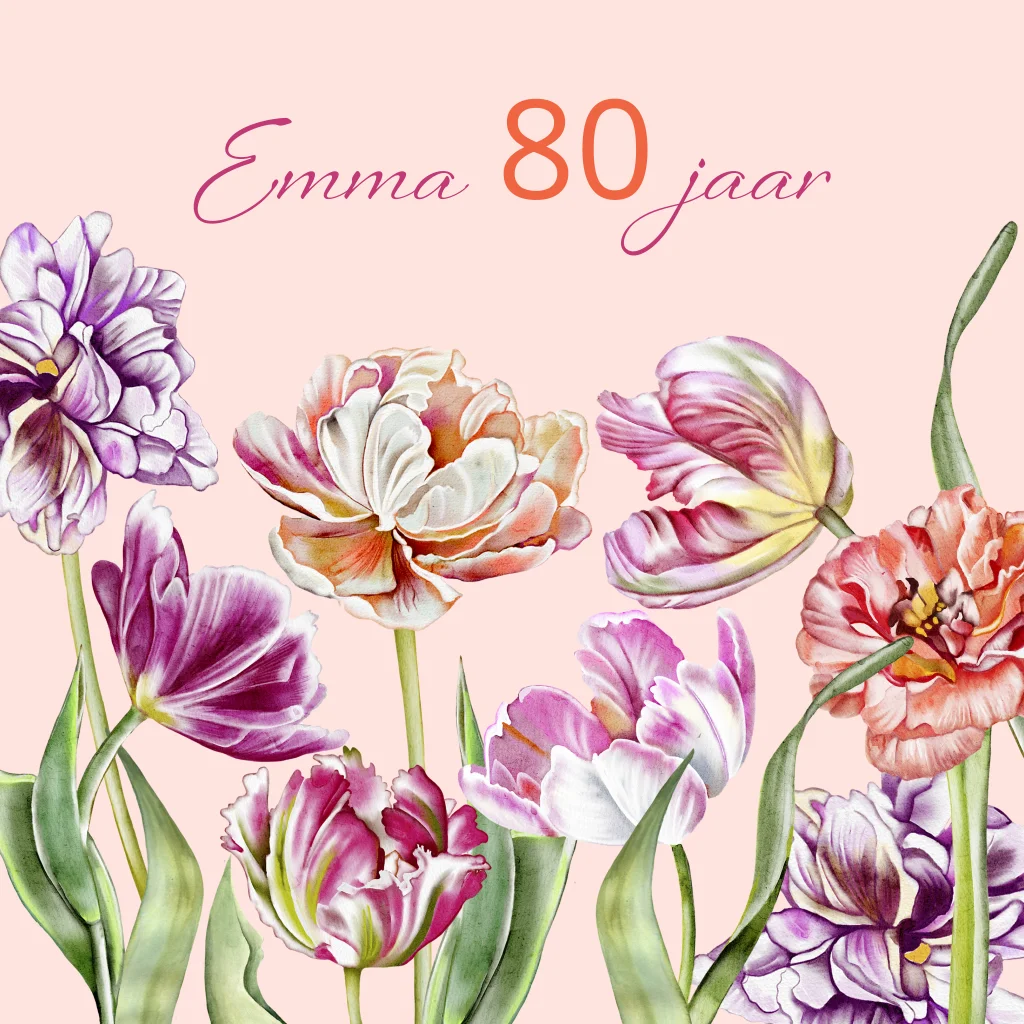 Uitnodiging 80e verjaardag vrouw met tulpen