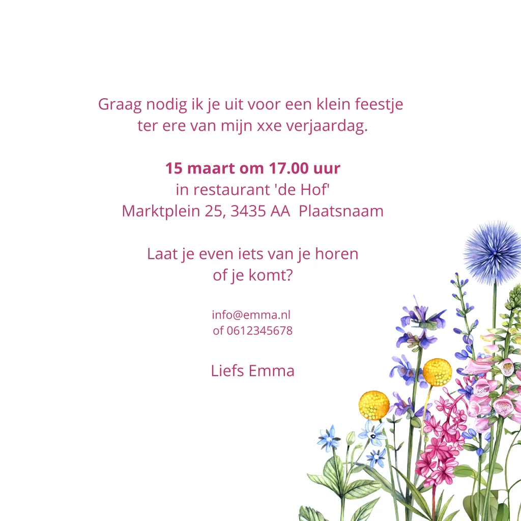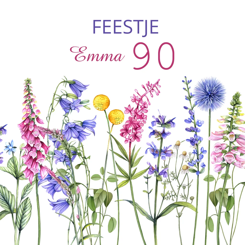 Uitnodiging verjaardag vrouw 90 jaar met veldbloemen