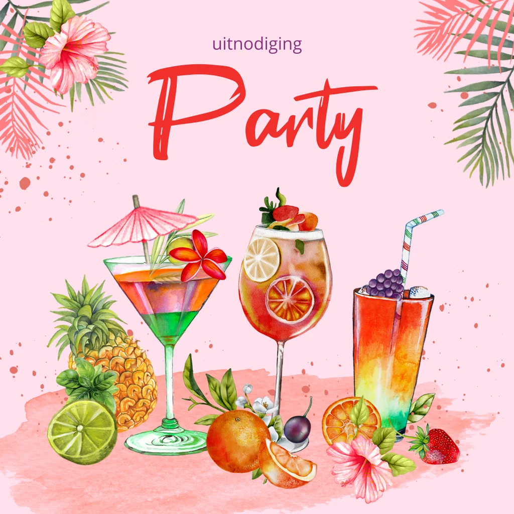Uitnodiging voor een verjaardag, feestje of borrel met leuke cocktails. (24099)