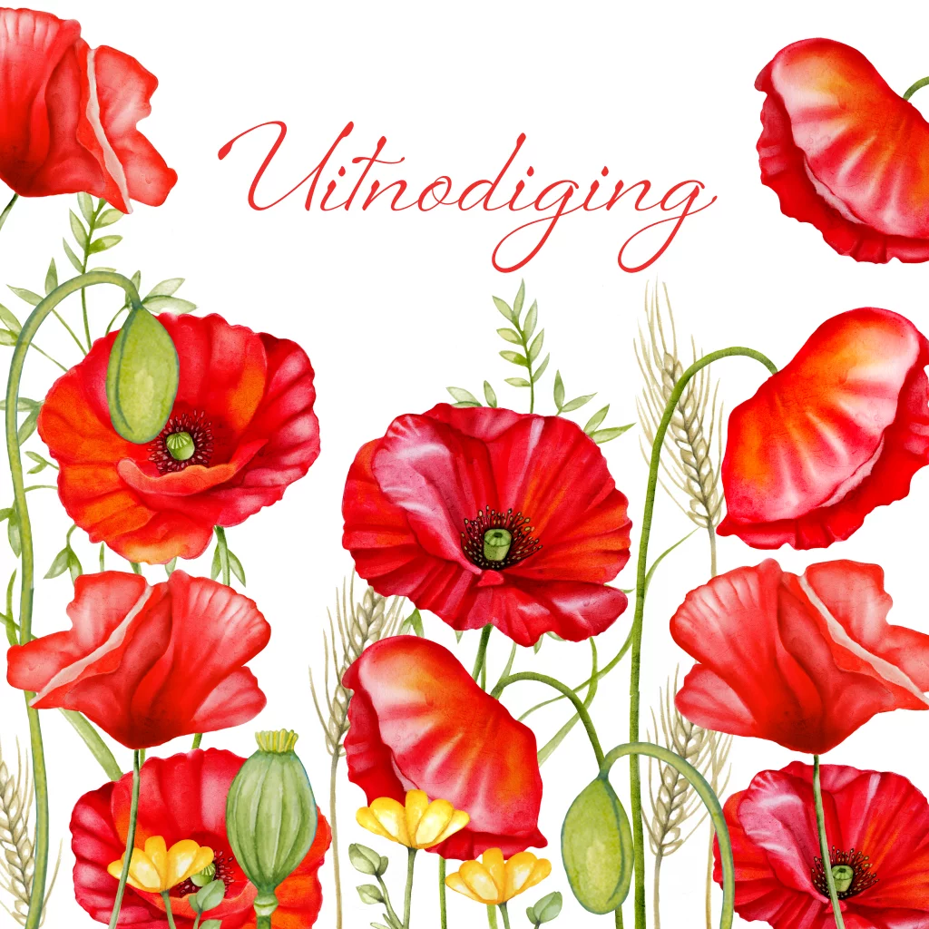 Uitnodiging feest of verjaardag klaprozen voor een vrouw