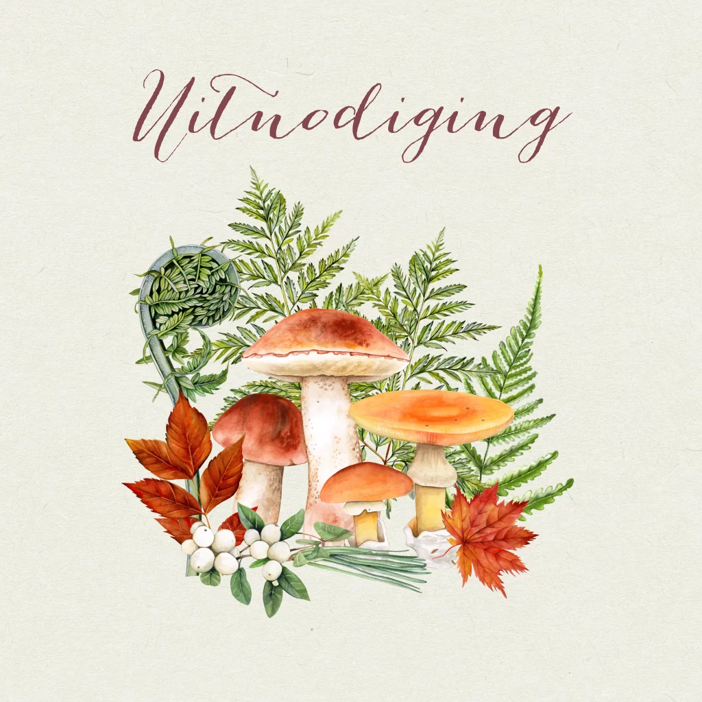 Uitnodiging feestje of verjaardag met paddestoelen herfst