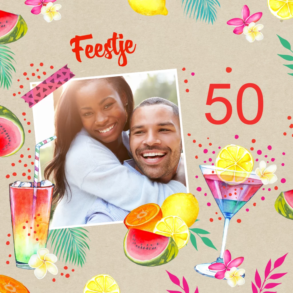 Uitnodiging voor een tropisch feestje met leuke illustraties. (22405)