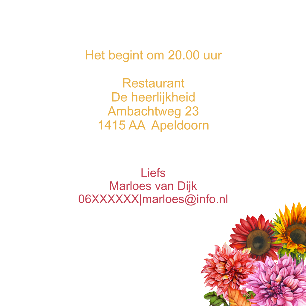 Uitnodiging voor een verjaardagsfeestje met mooie herfstbloemen. (10154)