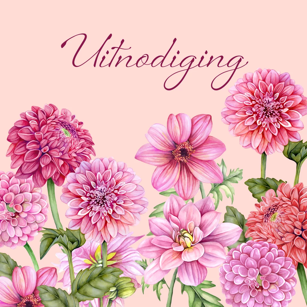 Uitnodiging verjaardag met dahliabloemen voor een vrouw