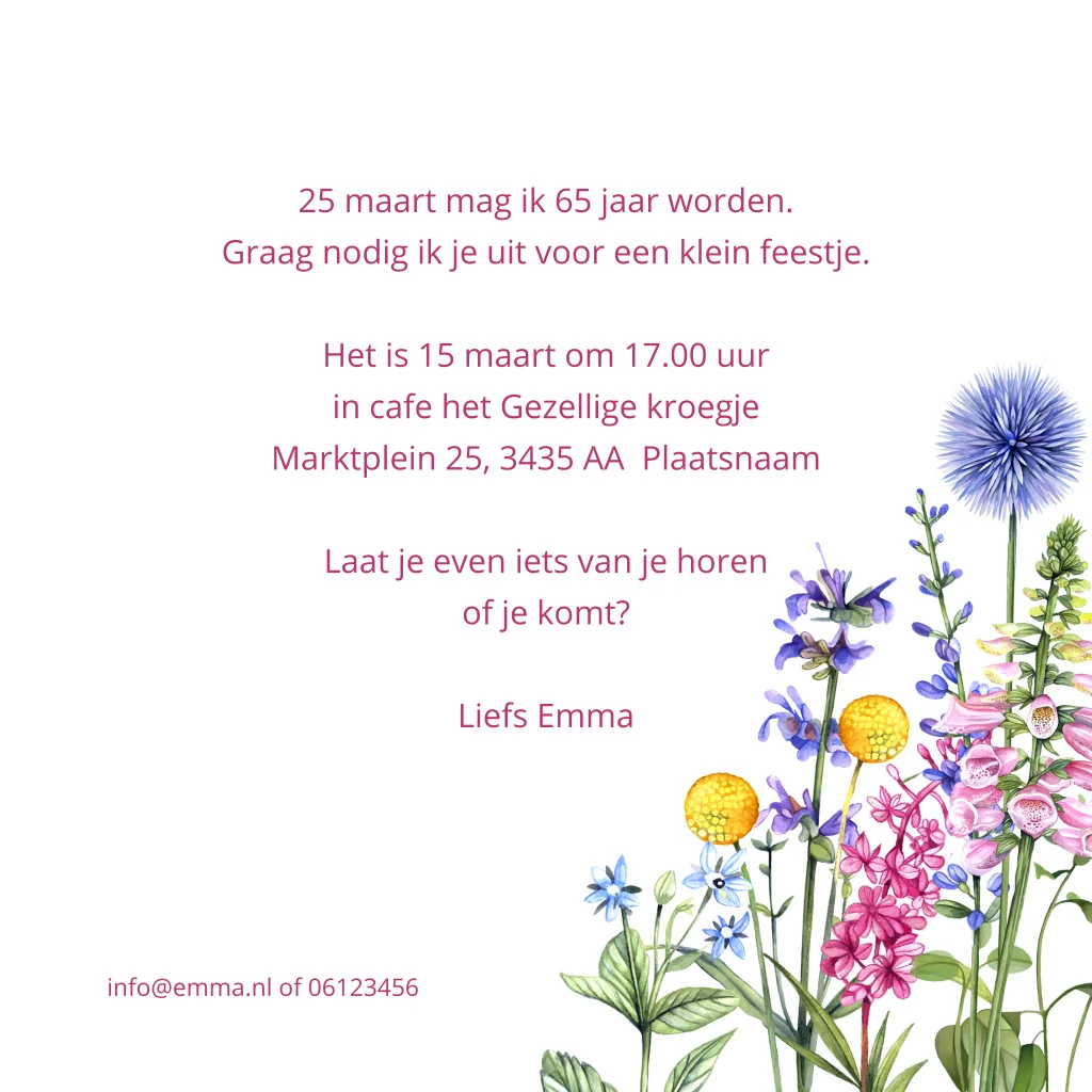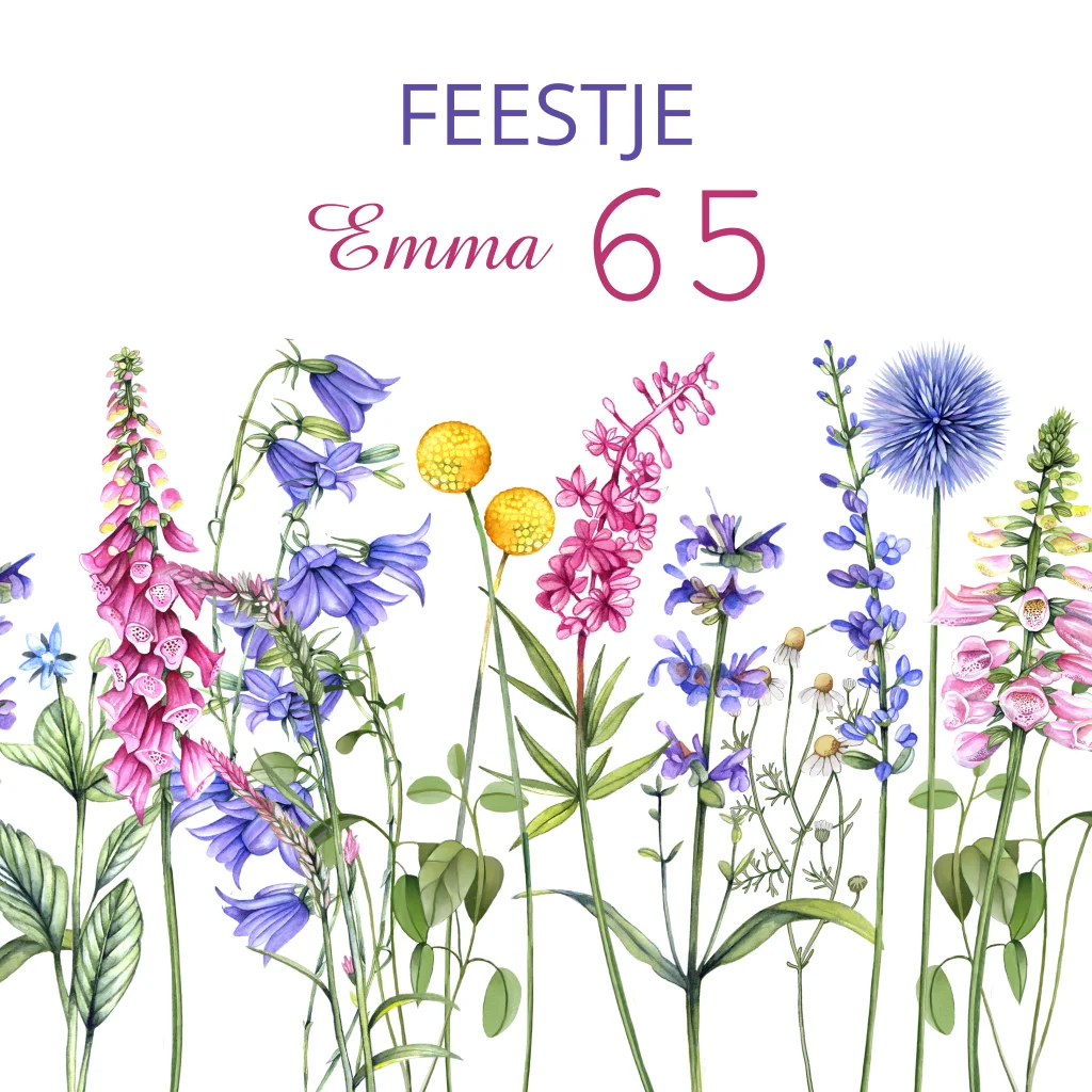 Uitnodiging verjaardag vrouw veldbloemen 65 jaar