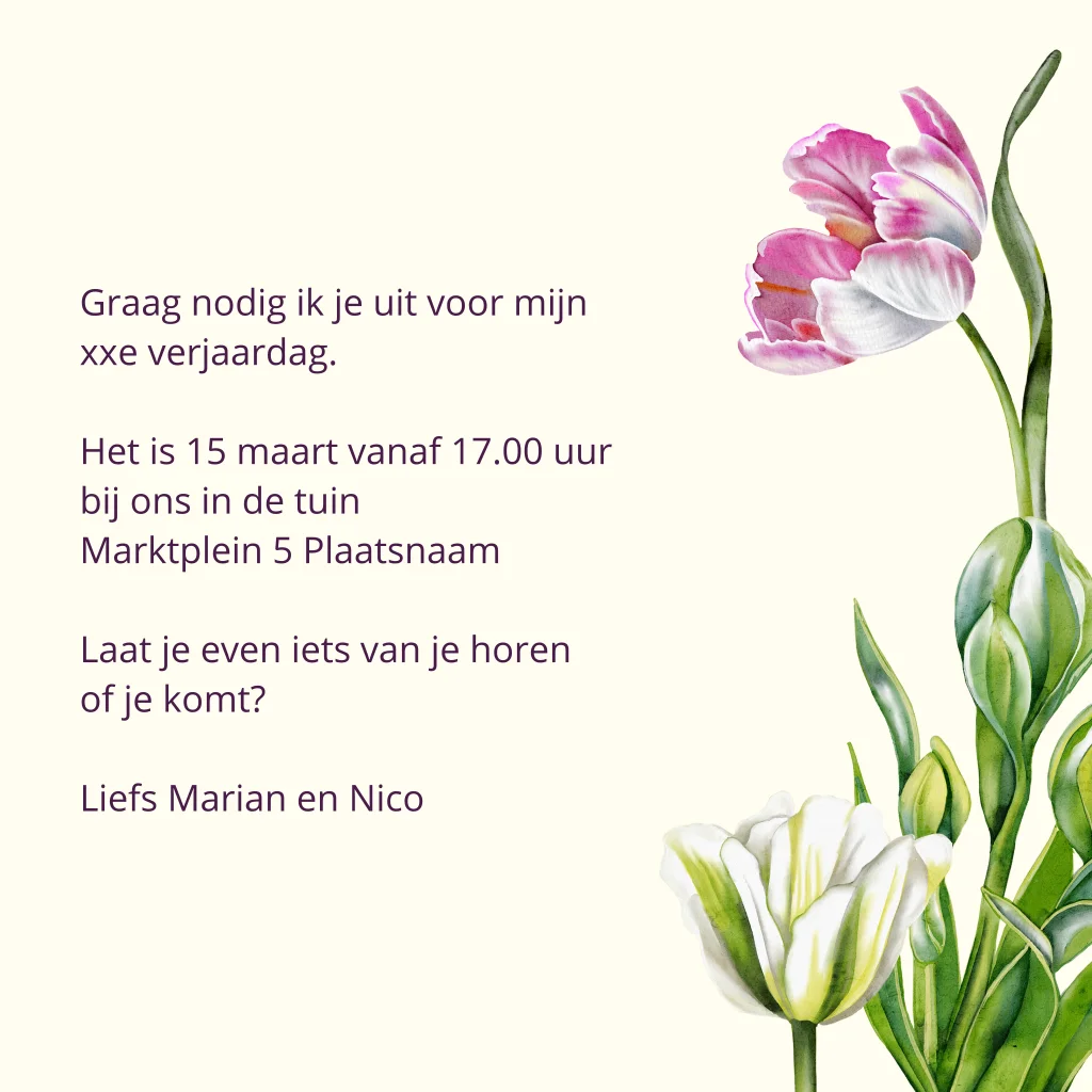 Uitnodiging verjaarsfeestje tulpen voorjaar 65 jaar