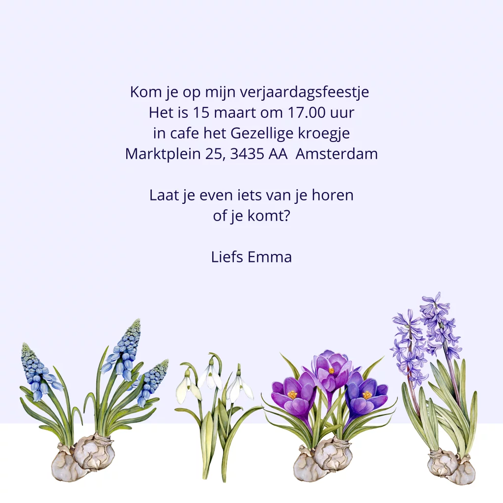 Uitnodiging verjaardag voor een vrouw met voorjaarsbloemen