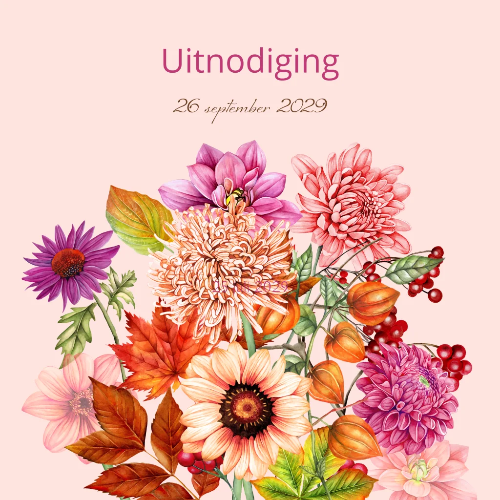 Uitnodiging feestje vrouw met mooie herfst bloemen. (24316)