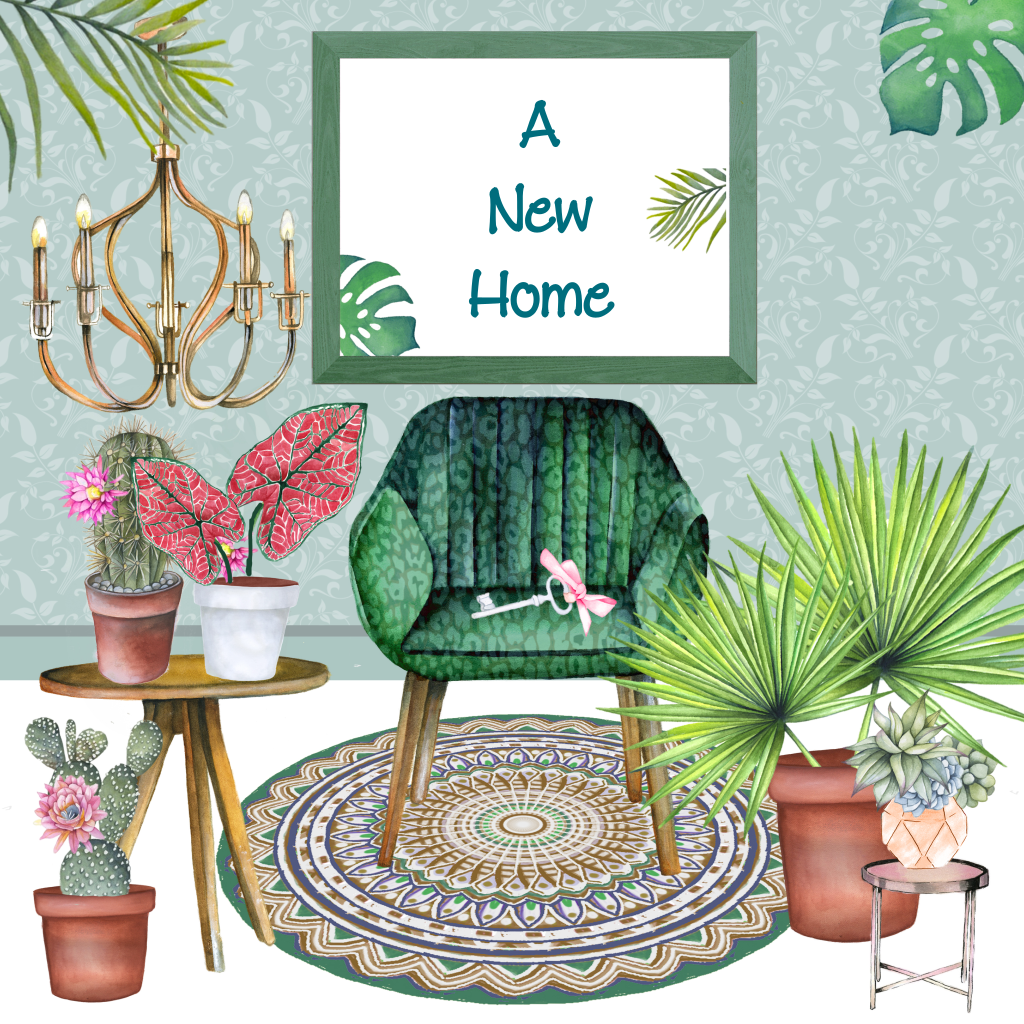 Verhuiskaart met hippe inrichting in het groen. (7810)