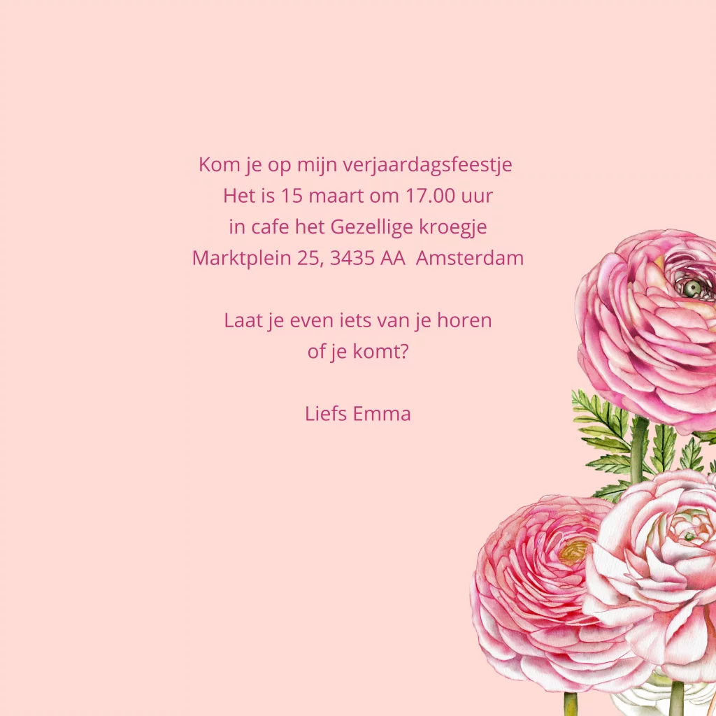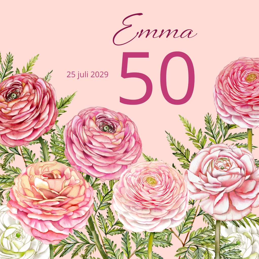 Uitnodiging voor een vrouw 50 jaar met roze ranonkels