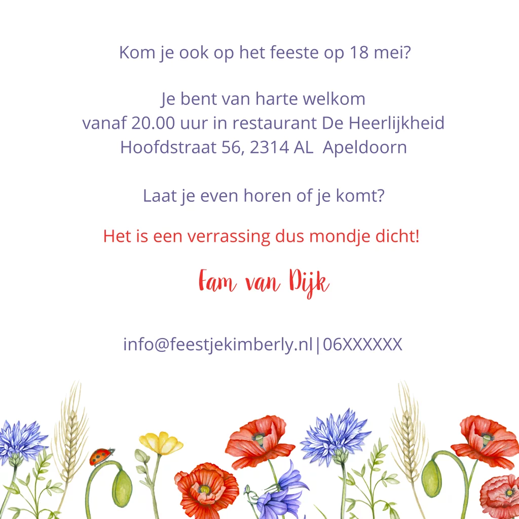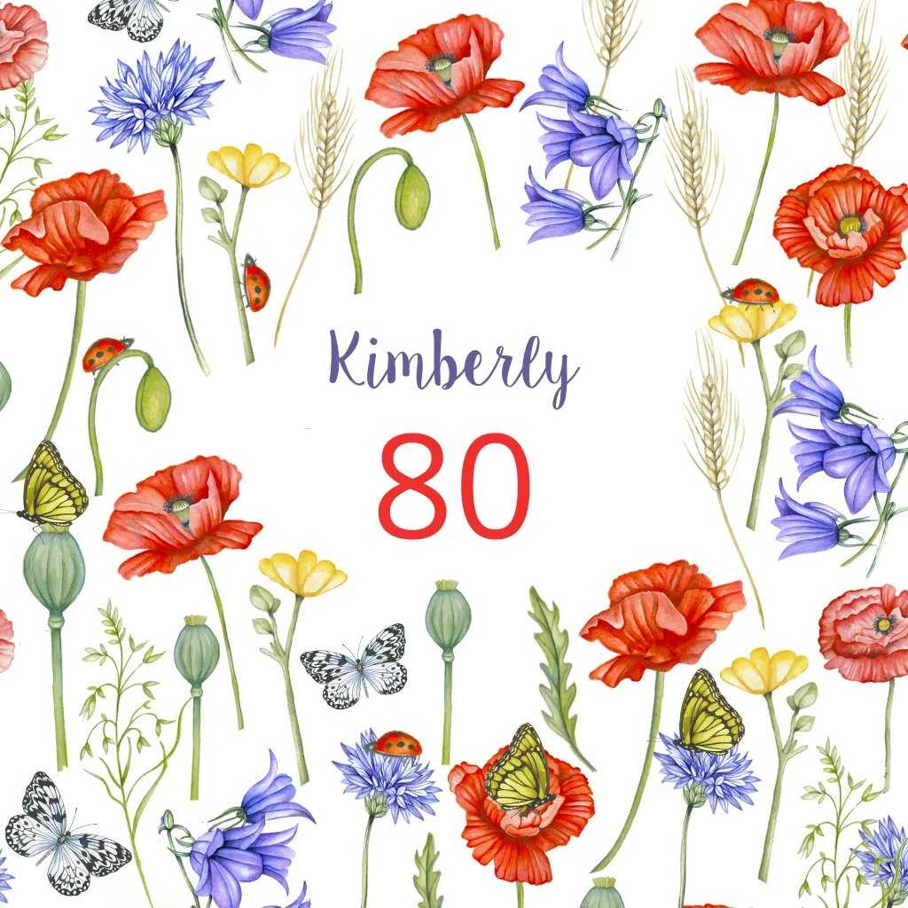 Uitnodiging Verjaardagsfeestje 80 jaar dame met mooie veldbloemen. (20930)