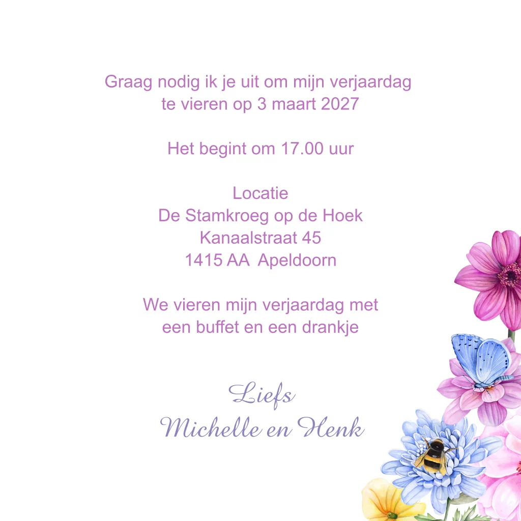 Uitnodiging feestje 60 jaar met zomerbloemen