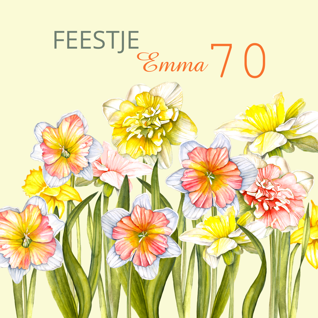 Verjaardagsuitnodiging 70 jaar voor een vrouw met narcissen