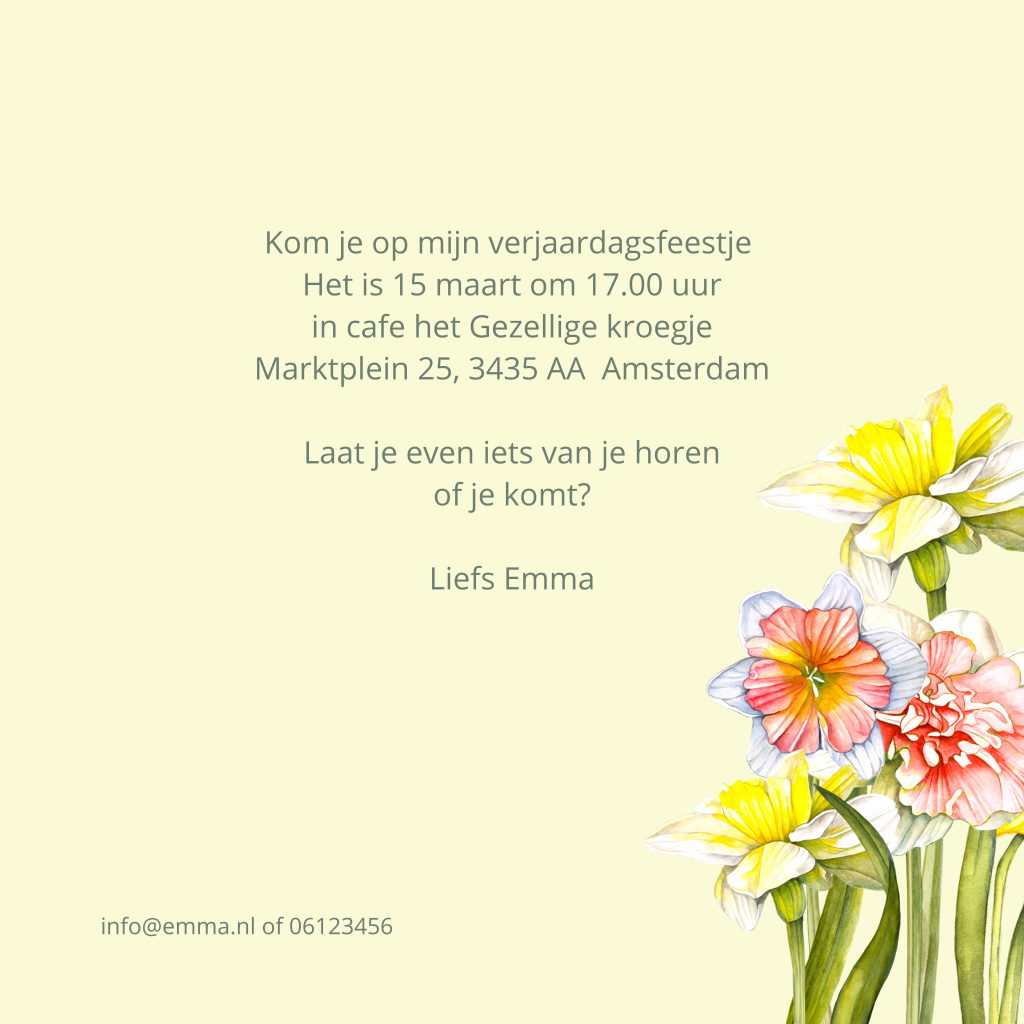 Uitnodiging voor een vrouw met narcissen. (23841)