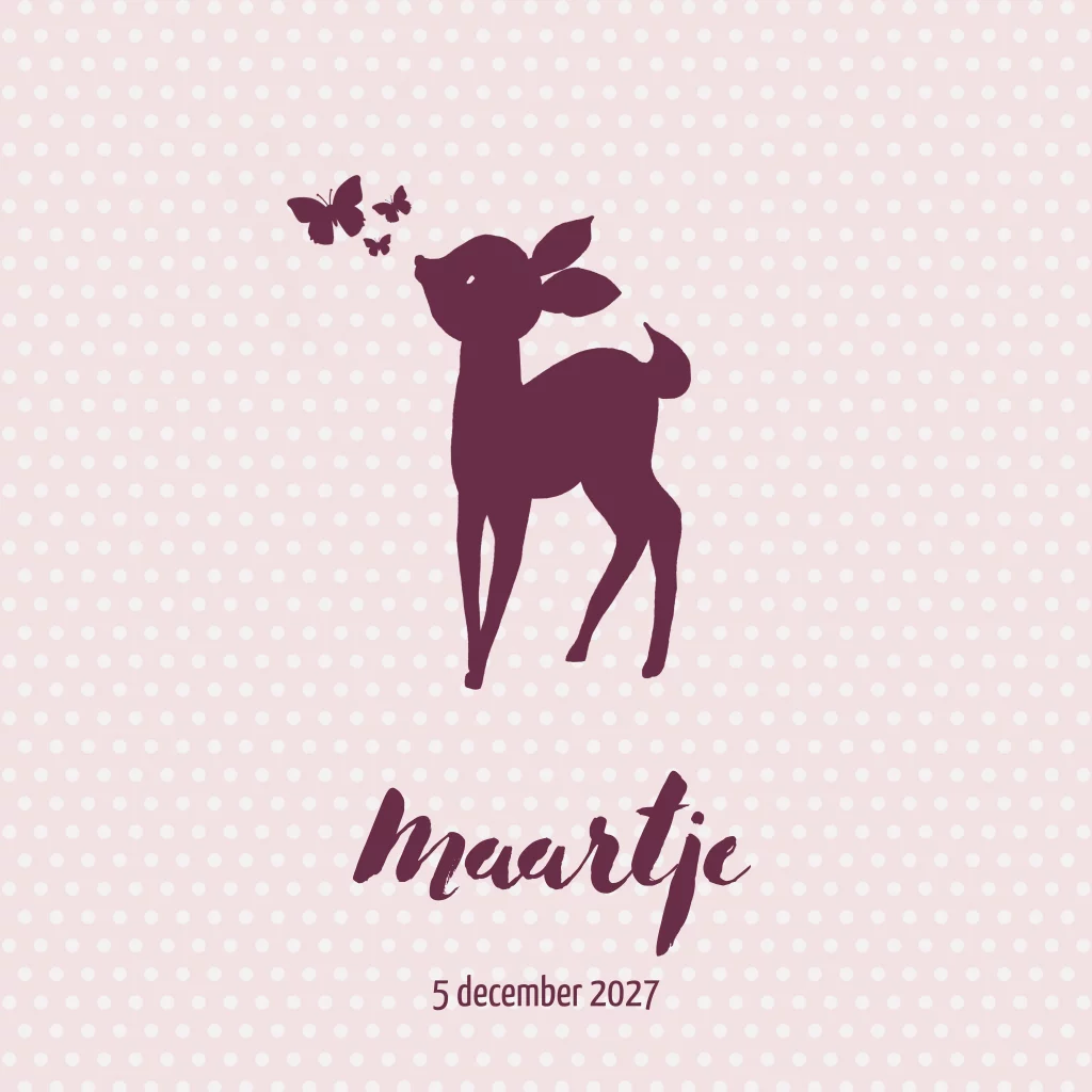 Hertje geboortekaartje voor een meisje met een silhouet van hertje en vlinders. (5665)