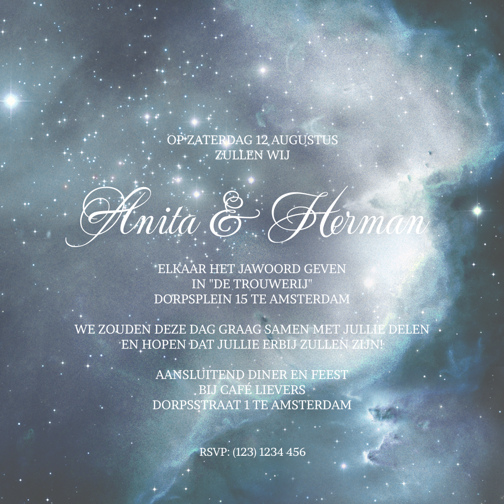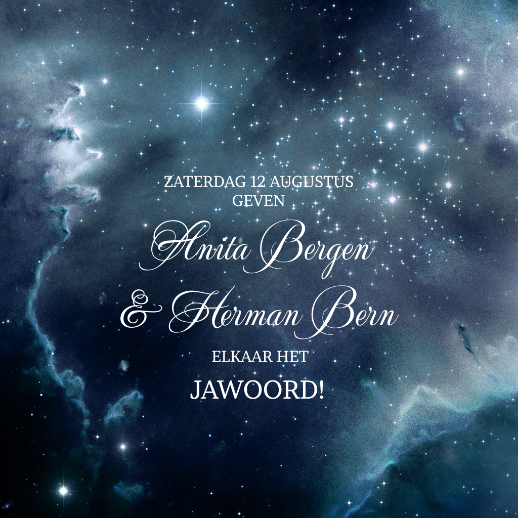 Donker blauwe galaxy trouwkaart. Met foto aan binnenzijde. (8108)