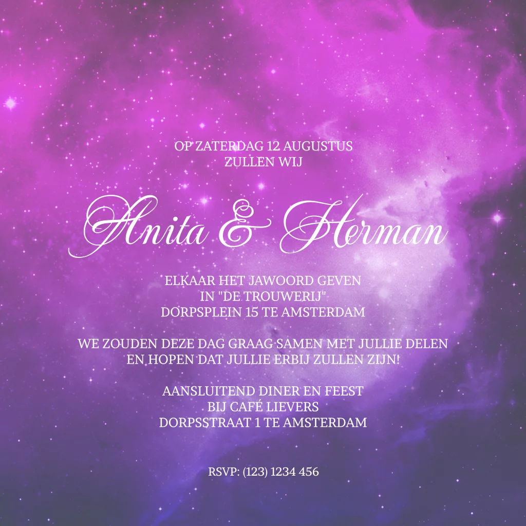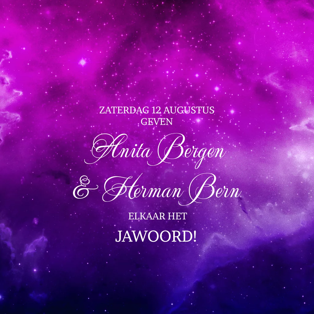 Donker paarse violet galaxy trouwkaart. Met foto aan binnenzijde. (8107)