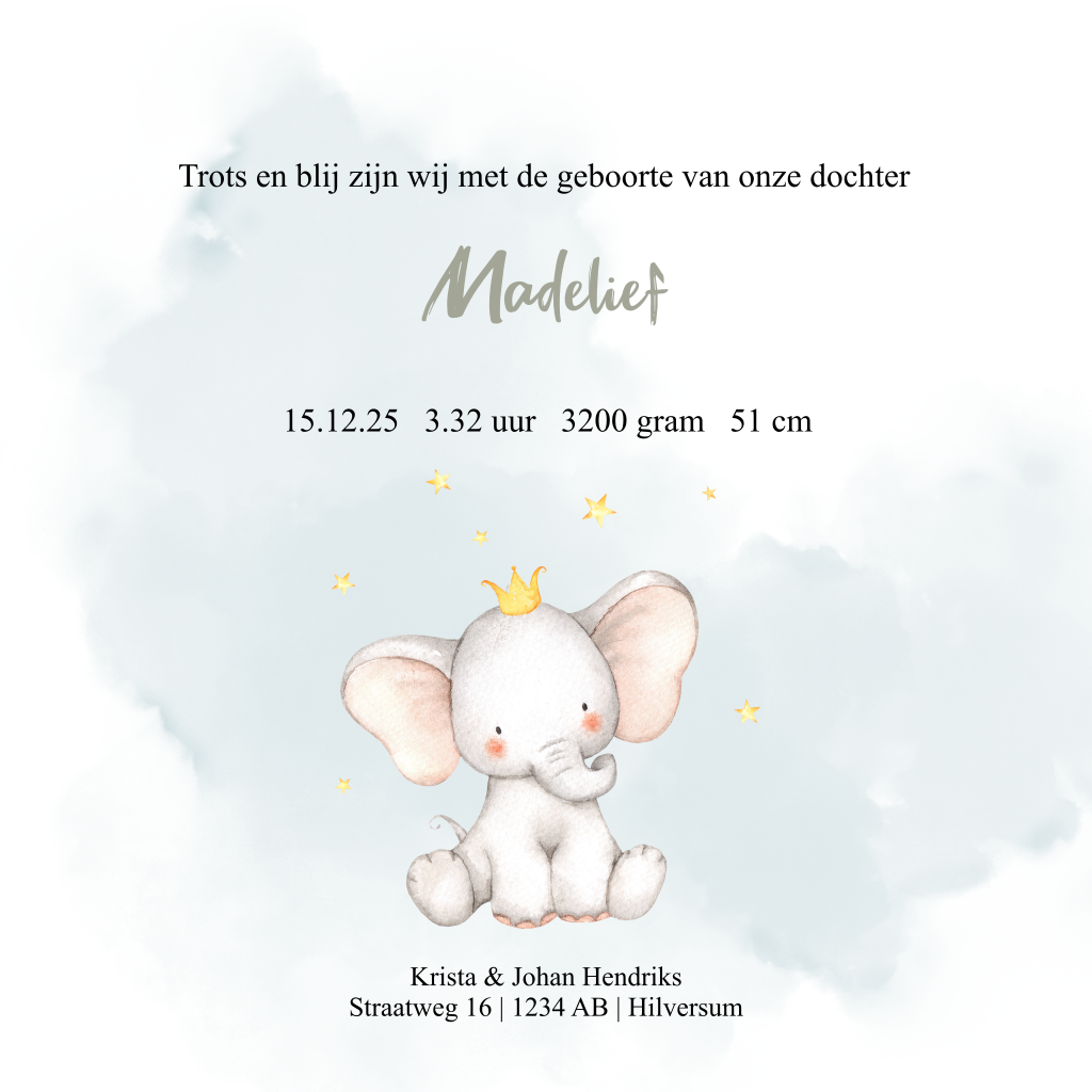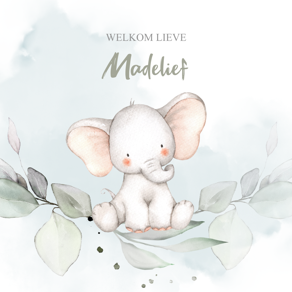 Geboortekaartje olifant meisje groen takje
