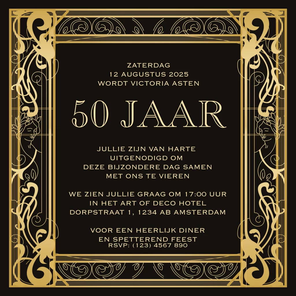 Stijlvolle Great Gatsby uitnodiging in Art Deco style voor 50e verjaardag. (6560)