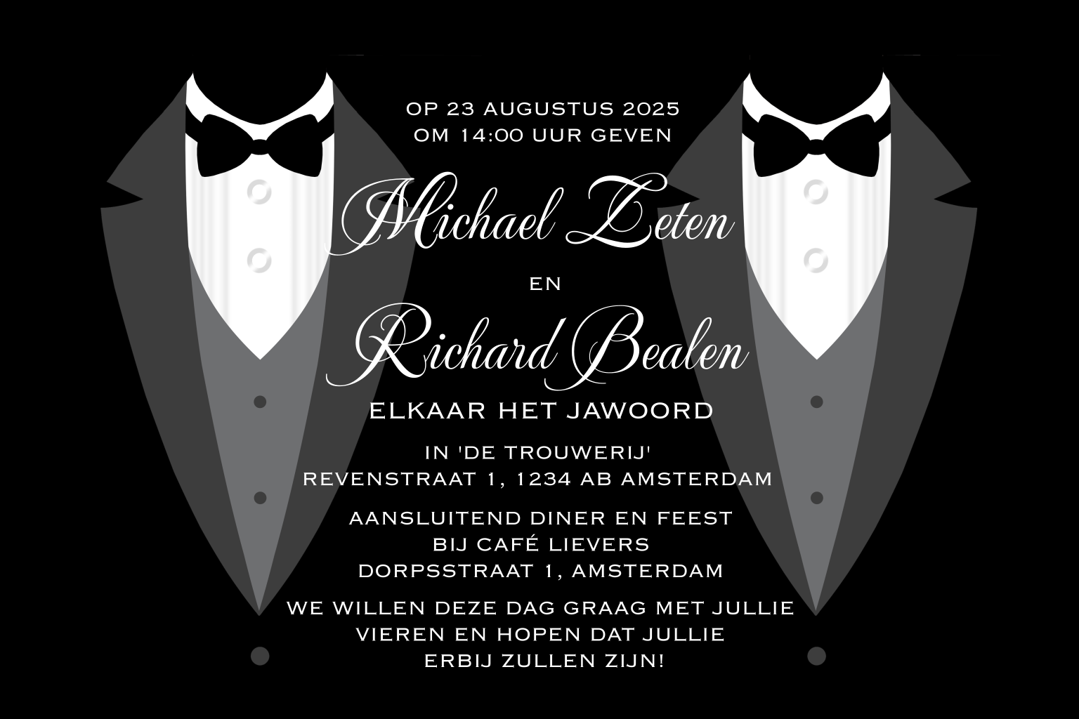Trouwkaart voor homo huwelijk. Speciaal voor gay stellen die een stijlvolle uitnodiging zoeken voor hun bruiloft. (5546)