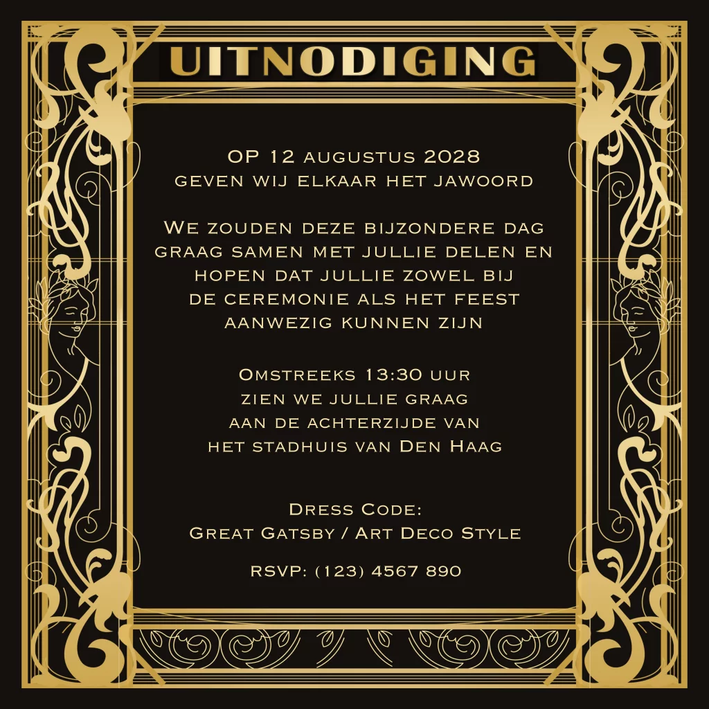 Great Gatsby uitnodiging Art Deco stijl met roaring 20s thema