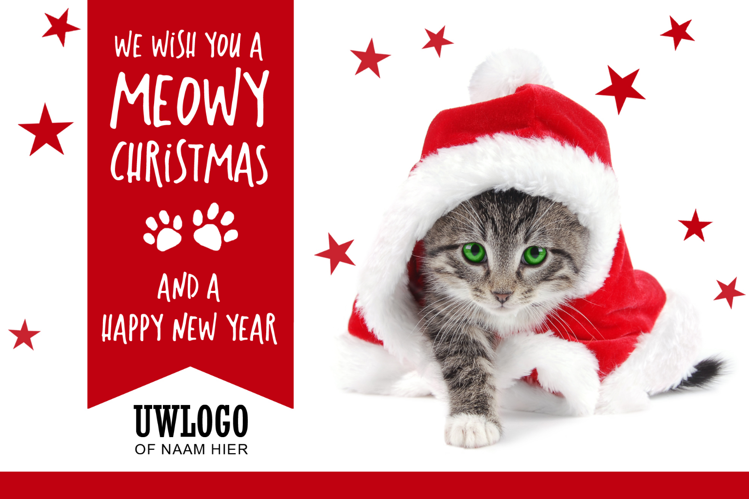 Kerstkaart met katje met kerstmuts
