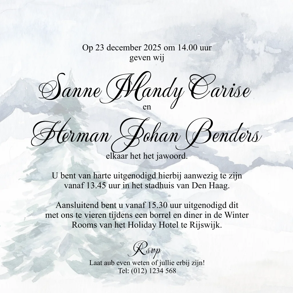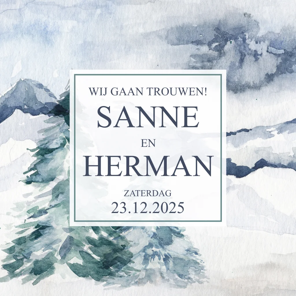 Trouwkaart thema winter blauw groen aquarel. (21205)